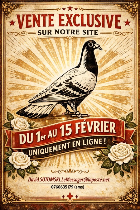 Concours sponsorisé par Pizza City Bergues Joli doublé sur Clermont 1/1022 vieux => Sylvie HENNEBEL - 2ème => Anthony DESMIDT Comme une bonne nouvelle n'arrive jamais seule : Anthony remporte le premier prix sur Fontenay de 670 Vieux ainsi qu'en Yearling/312. Félicitations à lui !!! Anthony DESMIDT